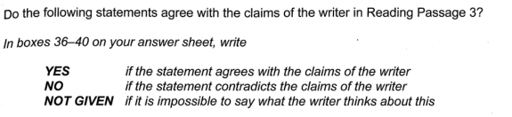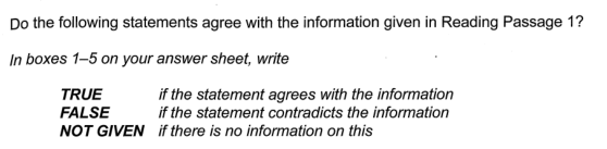 雅思阅读判断题有两种题目类型:一种是TRUE/FALSE/NOTGIVEN;另一种是YES/NO/NOTGIVEN. TRUE/FALSE/NOT GIVEN的题目形式: YES/NO/NOT GIVEN的题目形式: 烤鸭们在做雅思判断题的时候会错的原因小曼认为主要有三个: 第一:单词拼写问题,不够细心写错了; 第二:没有认真审题,经常会把YES/NO,TRUE/FALSE混淆在一起答题,比如题目要求填YES/NO/NOTGIVEN,但是会出现部分题的答案写了TRUE/FALSE。关于雅思阅读判断题的书写形式:简写(Y/N/NG,T/F/NG和全称都是可以的。 第三:没有弄清楚YES/NO/NOTGIVEN或者TRUE/FALSE/NOTGIVEN三个之间的区别。 前面两个原因就考烤鸭们自己细心、细心、再细心了,今天小曼着重来聊一聊第三个原因也是最主要的原因,YES/NO/NOTGIVEN或者TRUE/FALSE/NOTGIVEN三个之间的区别。 (1)TRUE/YES 是指此选项并非要求题干与原文的内容一模一样,而只要符合原文信息即可。来个例子 真题原文:Records show that only two have collapsed during the past 1400 years.(翻译:有记录显示,在过去1400年间,只有两座倒塌了。) 题目: Only two Japanese pagodas have collapsed in 1400 years.(翻译:一千四百年来,仅有两座日本宝塔倒塌。) 解题思路:在题目中找到定位词:1400years,关键词:only two,因为题目与原文信息相符,所以答案是TRUE/YES (2)FALSE/NO是指题干与原文信息是相矛盾、相违背、相抵触的。来个例子: 真题原文:The disastrous Hanshin earthquake in 1995 killed 6,400 people, toppled elevated highways, flattened office blocks and devastated the port area of Kobe. Yet it left the magnificent five-storey pagoda at the Toji temple in nearby Kyoto unscathed, though it levelled a number of buildings in the neighbourhood.(翻译:尽管大地震将京都附近东寺周围的大量建筑夷为平地,可寺里宏伟的五层宝塔却完好无损。) 题目:The Hanshin earthquake of 1995 destroyed the pagoda at the Toji temple.(翻译:1995年,阪神地震摧毁了东寺里的宝塔。) 解题思路:在题目中找到定位词:1995,Toji temple 关键词:destroyed。因为题目是宝塔被摧毁了,但是原文unscathed的意思是“未受损坏的”,如果不知道unscathed的意思,也可通过前面的left判断,所以答案是FALSE/NO。 (3)NOT GIVEN是指原文中完全没有提及题干所说的相关内容,或者原文中提到的相关信息与题干内容不属于同一个范围或性质。来个例子: 真题原文:It was only thirty years ago that the building industry felt confident enough to erect office blocks of steel and reinforced concrete that had more than a dozen floors.(翻译:仅仅在30年前,建筑界的从业者们才有足够信心建造高于十二层的钢筋混凝土办公大楼。) 题目:The other buildings near the Toji pagoda had been built in the last 30 years.(翻译:东寺宝塔周围的其他建筑是在过去三十年间建成的。) 解题思路:在题目中找到定位词: 30 years 关键字: other buildings, 30 year。题目的主语是其他建筑,原文指的是建筑界的从业者们,两者内容不相关。所以答案是NOT GIVEN。 通过以上三个例子,烤鸭们是不是对判断题有了清楚的认识呢,敲黑板,请注意: 雅思阅读判断题的做题步骤来了: 首先,先看题目再看文章,雅思阅读的判断题是按题目顺序出题的,即第二题对应在文中的位置是在第一题的答案句后面出现,所以要按题目顺序做题。 其次,先在题目找定位词,然后再通过定位词确定答案句所在的位置。定位词是指在文中容易识别的单词(数字,人名,地名,专有名词等) 再其次,对比题目和答案句,找到关键词,关键词决定了答案。